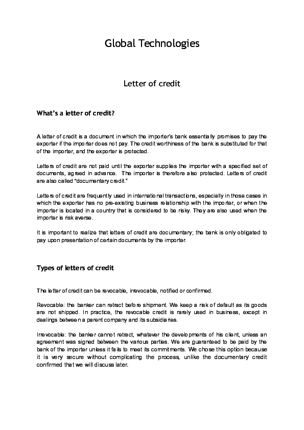 Doc Letter Of Credit Raphael Robin Academia Edu