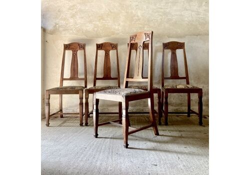 6 Oak Arts And Crafts Dining Chairs Vinterior